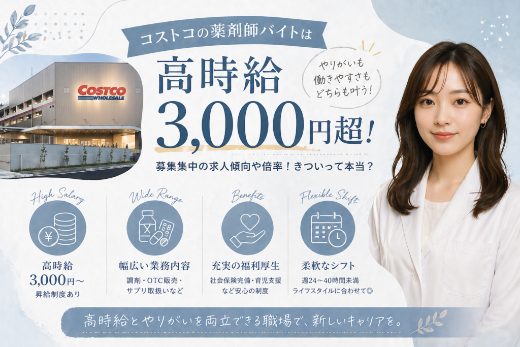 コストコホールセールジャパンは高収入・フラットな社風・福利厚生の充実で注目される人気企業です。その中でも薬剤師は、時給2,900円以上という業界でも高水準の給与が提示されており、安定した収入を得られる魅力的な職種です。 一方で、調剤業務に加え...