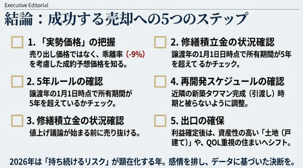 まとめ|タワマンの売り時は「税金・相場・修繕」で決まる
