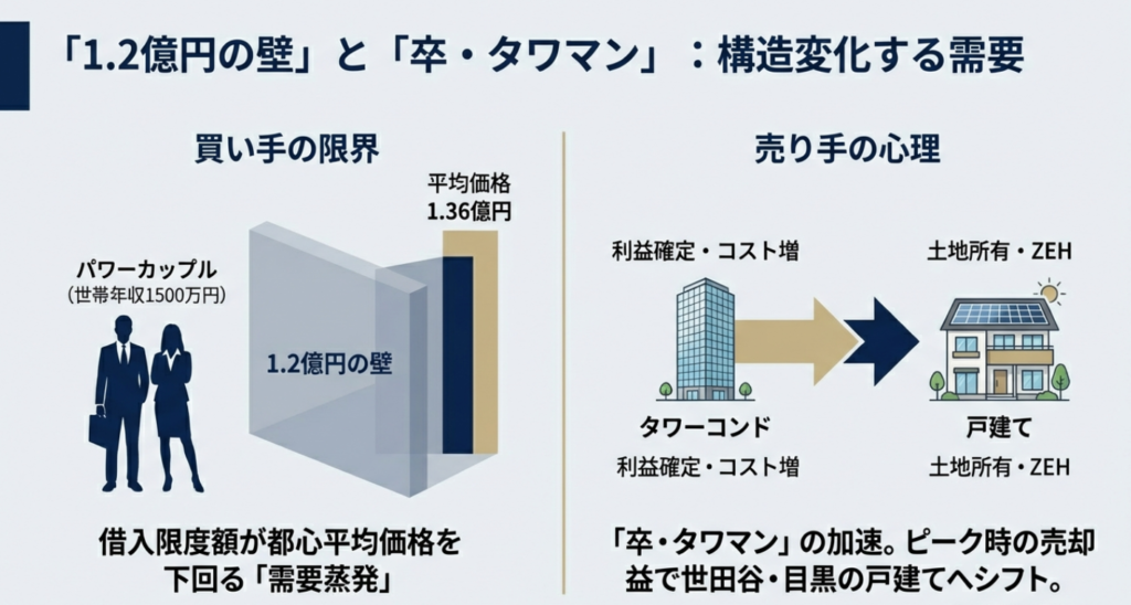 都心タワマンは1億円超の価格帯が主流となり、購入可能な層は限定されます。金利上昇局面では借入可能額が縮小し、高額物件ほど反響が減りやすい傾向があります。
