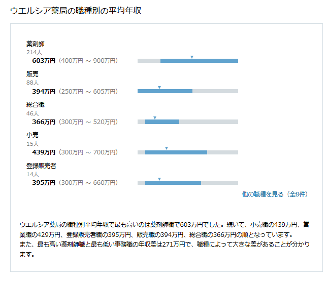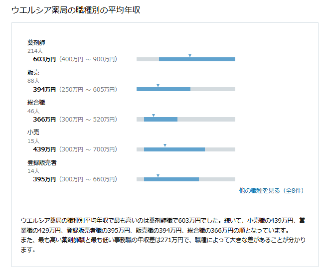2. 【口コミサイトの集計】ウエルシア薬剤師の平均年収は603万円?