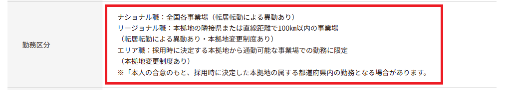 • 勤務区分(ナショナル職・リージョナル職・エリア職)