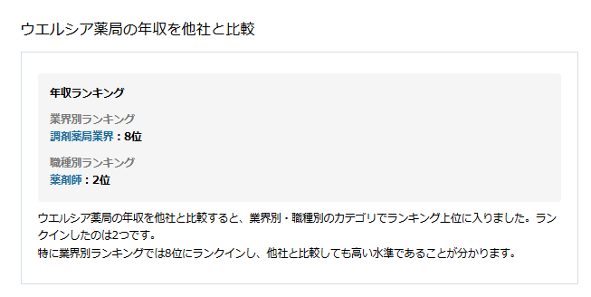実際に中途入社した社員の口コミでは、「ウエルシア薬剤師の給与はドラッグストア業界の中では高い」という声も見られます。